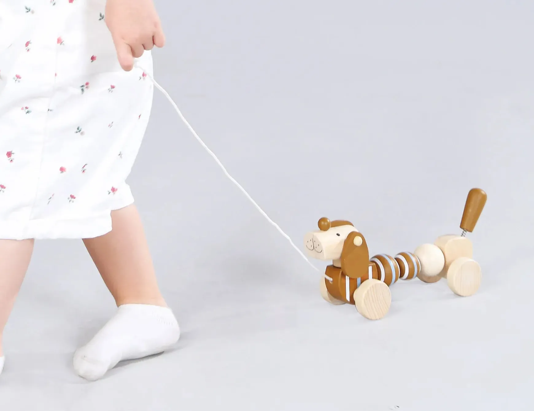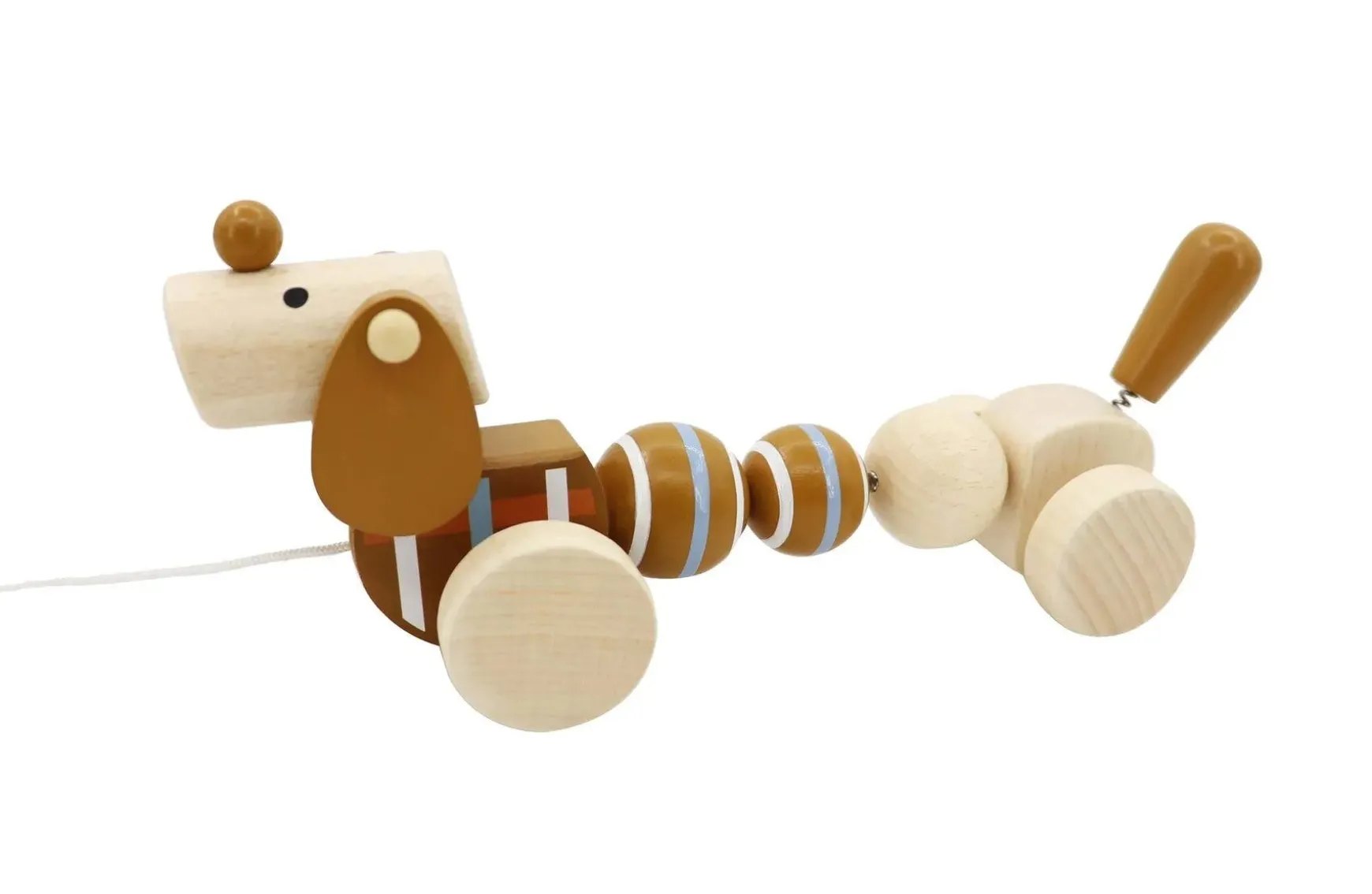 As your child learn to walk, they can pull along this adorable companion wherever they go. Always up for walkies and easy to please, the pull along sausage dog from Calm u0026amp; Breezy by Kaper Kids gently bounces and wags its tail as it is pulled along. Whether its a stroll around the house, garden or out and about on an adventure, this cute little pup is a joy to watch bounding about on his wheeled legs. This little companion encourages children to develop their gross motor skills and gives them a cute companion to pretend play with. Each wooden Pull Along Sausage Dog from Calm u0026amp; Breezy by Kaper Kidz is made from timber and finished to the highest quality and painted in child safe, non toxic paint.