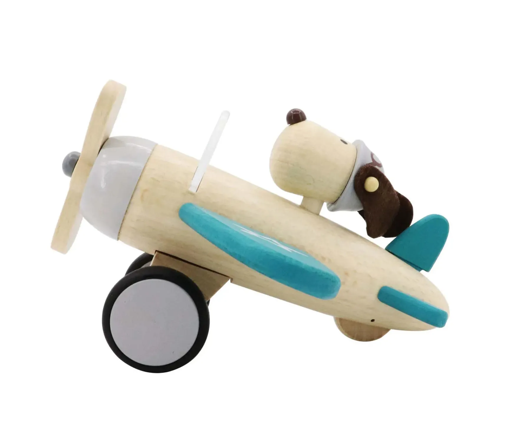 Large, natural timber, retro styled, single wing plane with cute dog driver and rubberised wheels. Kids will have a ball imagining the stunts this daredevil pilot could do. Beautiful, yet sturdy enough to play with.