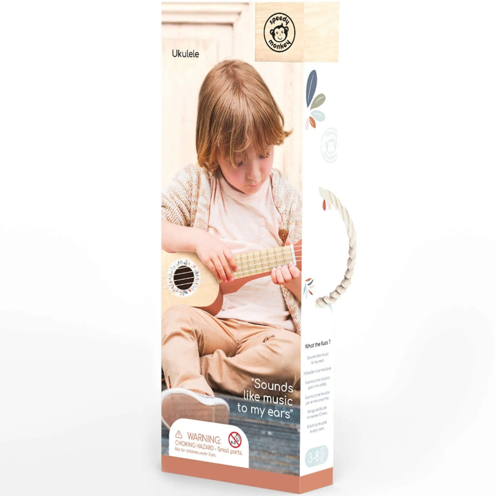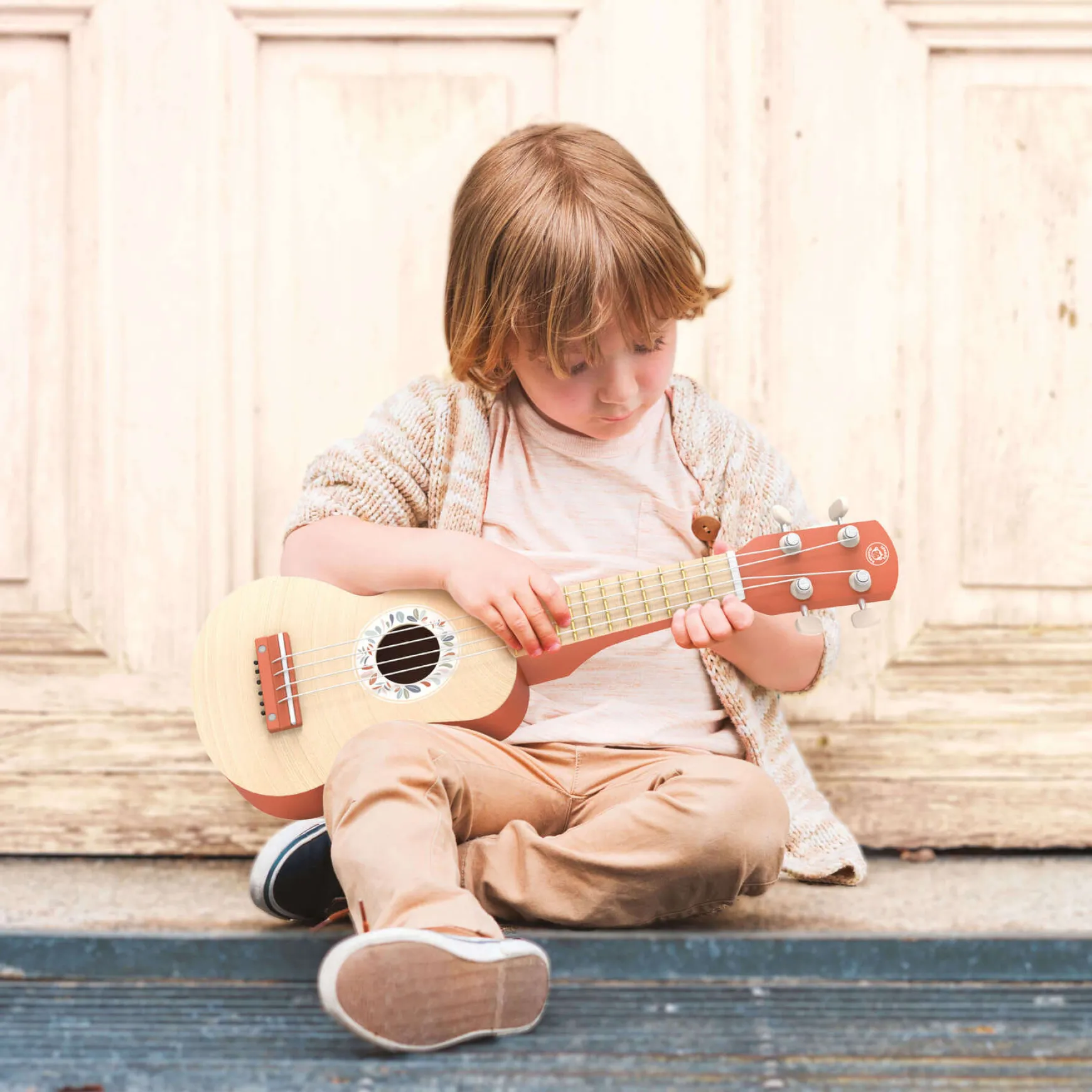 Music ignites all areas of child development, hence, this soft nylon four string toy ukelele is a must have for your little one! The ukelele is an earthy terracotta and wood colour, with surface coating designed to prevent finger injuries. As it is easy to carry around, your child will enjoy the sound and actively strengthen and develop their musical talents anywhere at anytime. This toy is crafted from sustainably sourced wood from FSC® certified forests and coated with non toxic paint.