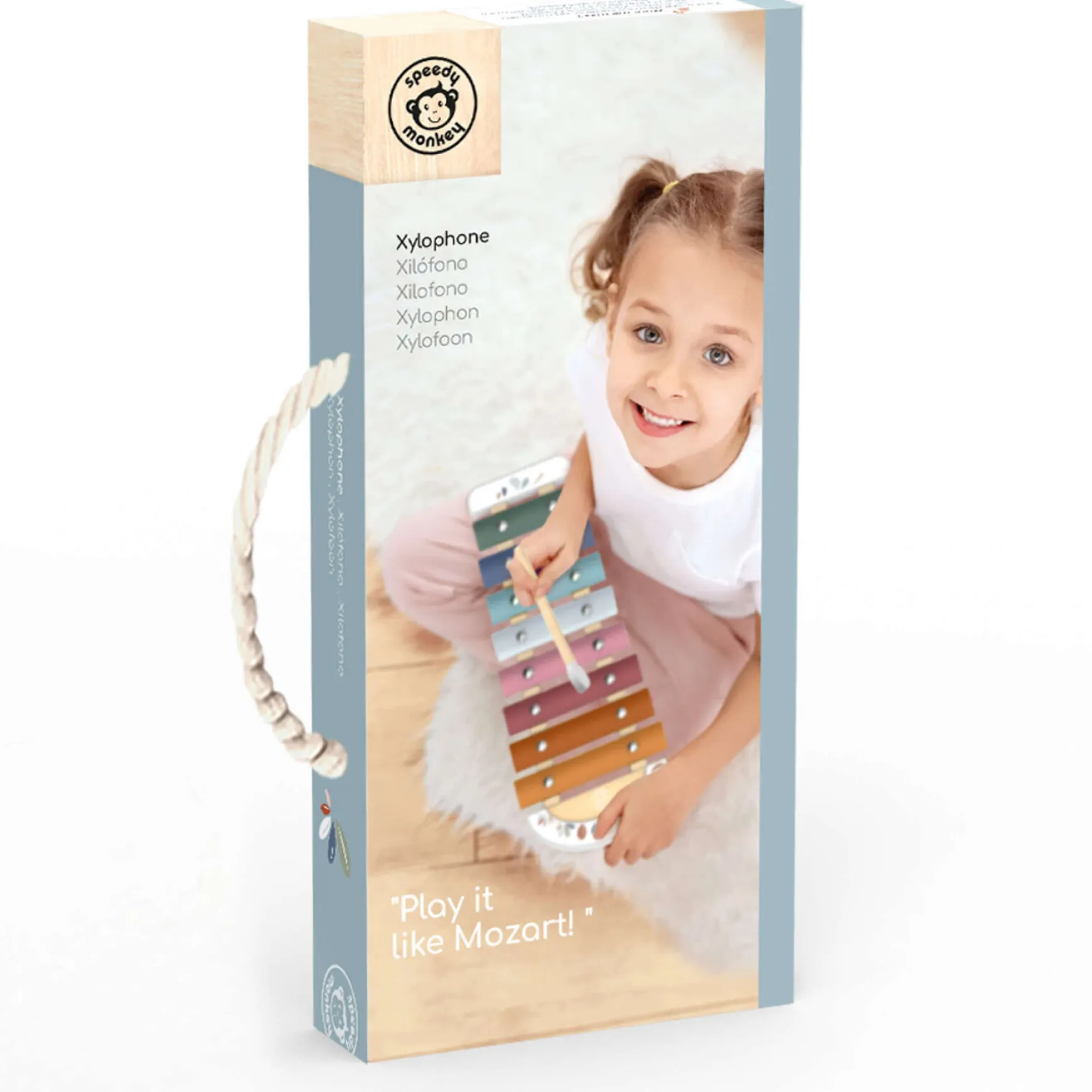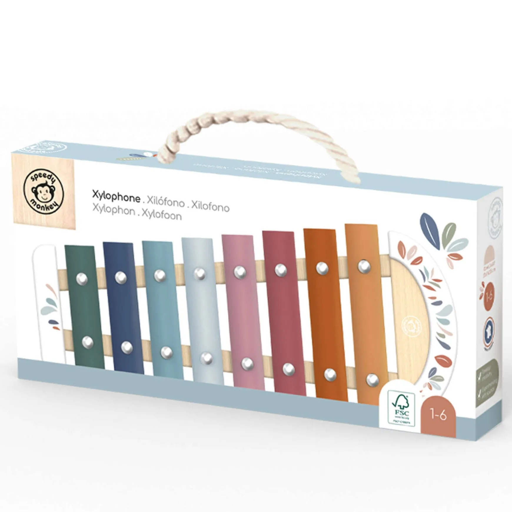 A fine colourful xylophone with metallic keys and a single piece wooden mallet that your little one will enjoy. Totally safe as it doesn’t have any sharp edges. It offers the full scale of eight musical tuned bars for an authentic musical experience. Each coloured key in this musical toy matches their assigned notes for easy learning. This toy is crafted from sustainably sourced wood from FSC® certified forests and coated with non toxic paint.