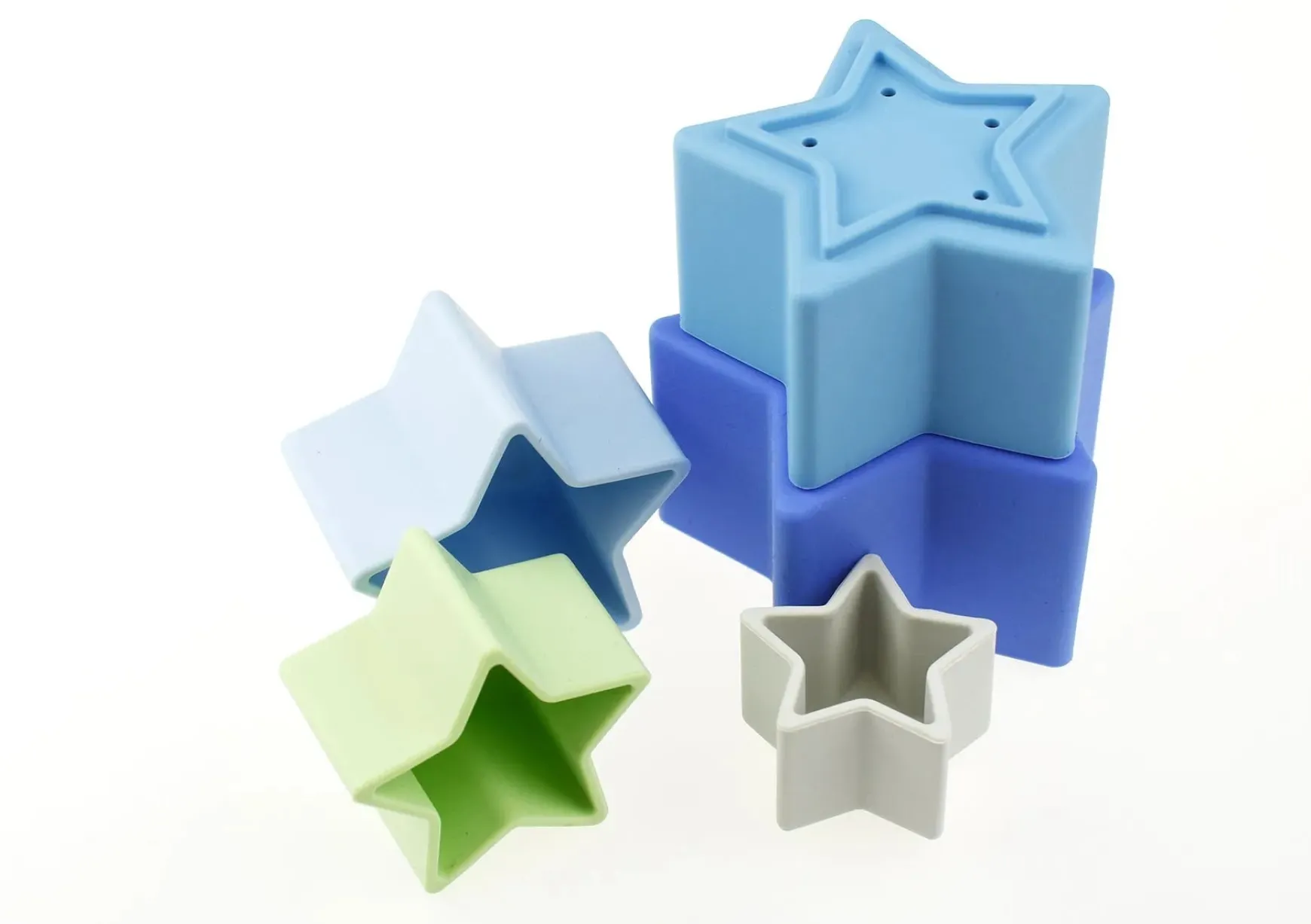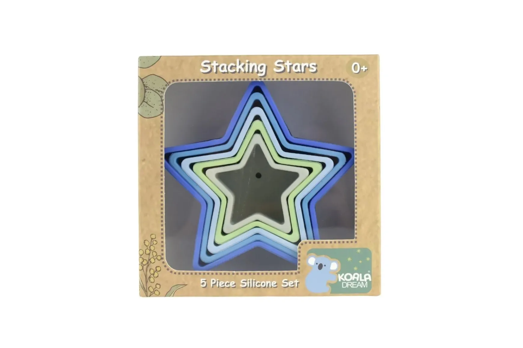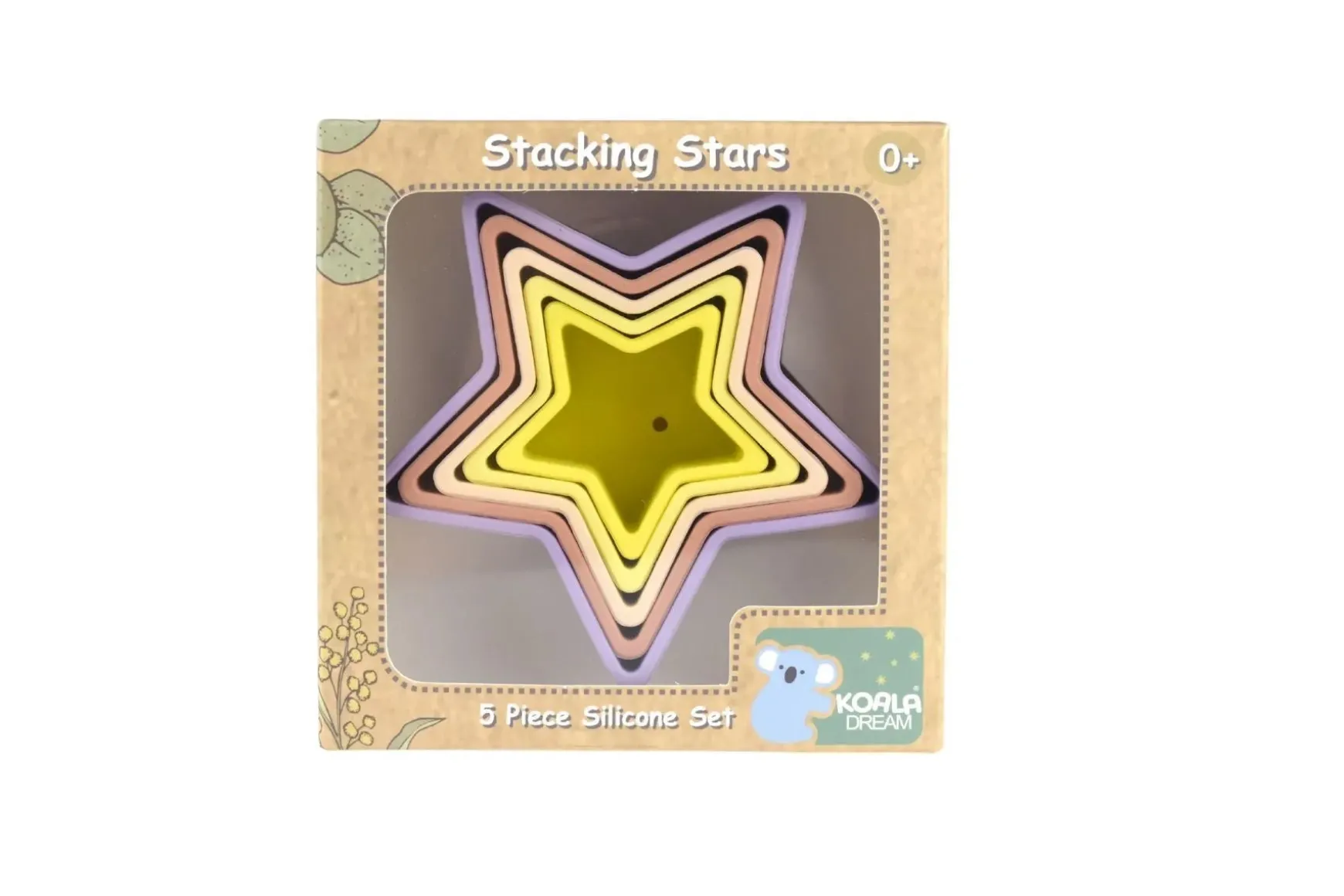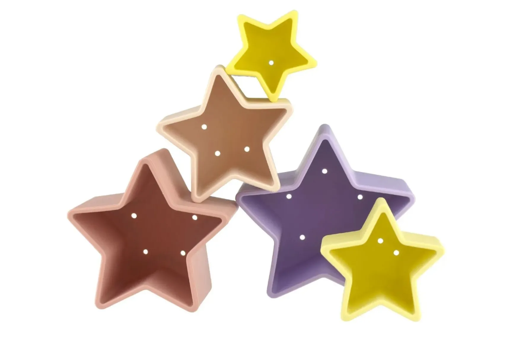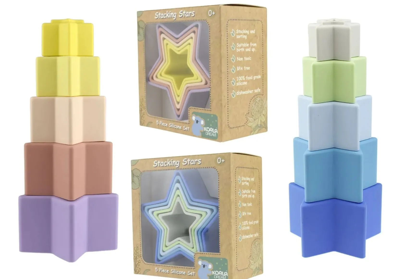 Please note price is for ONE Stacking Stars 5 Piece Silicone Set. Various colours available, chosen at random when ordering online.