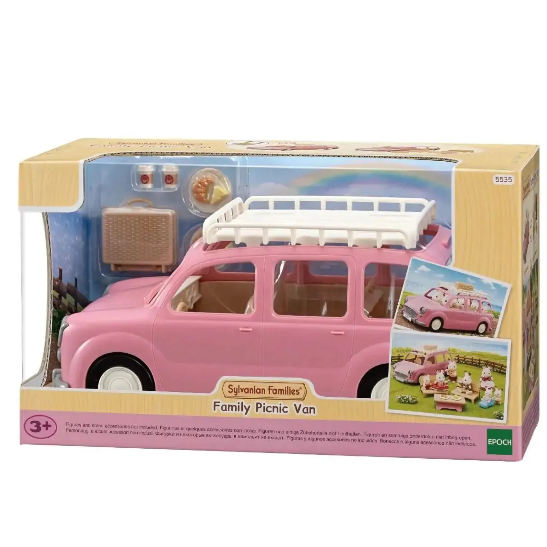 The Family Picnic Van is a car with a roof rack, that can fit up to eight figures. Remove the boot door and seats to turn them into a picnic table set. Includes Main unit, Rack, Back door/Table, Handle, Basket, Seat/Child seat x2, Cheese x2, Croissant x2, Plate x2, Drink x2 (a total of 15 pieces)