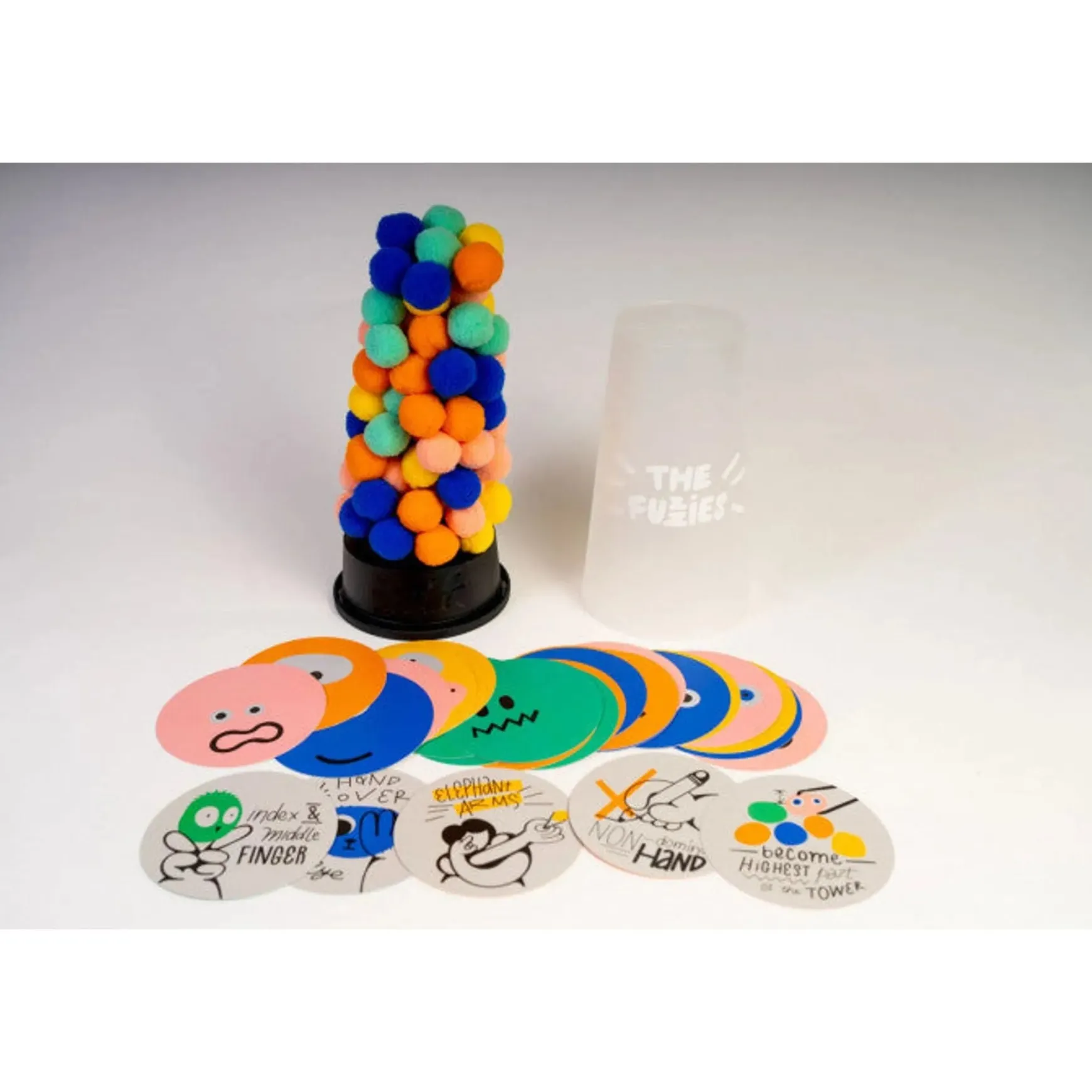 Draw a card a remove that color of fuzzy using either tweezers or your fingers but you can not get out of your seat. Stick it anywhere higher on the tower.