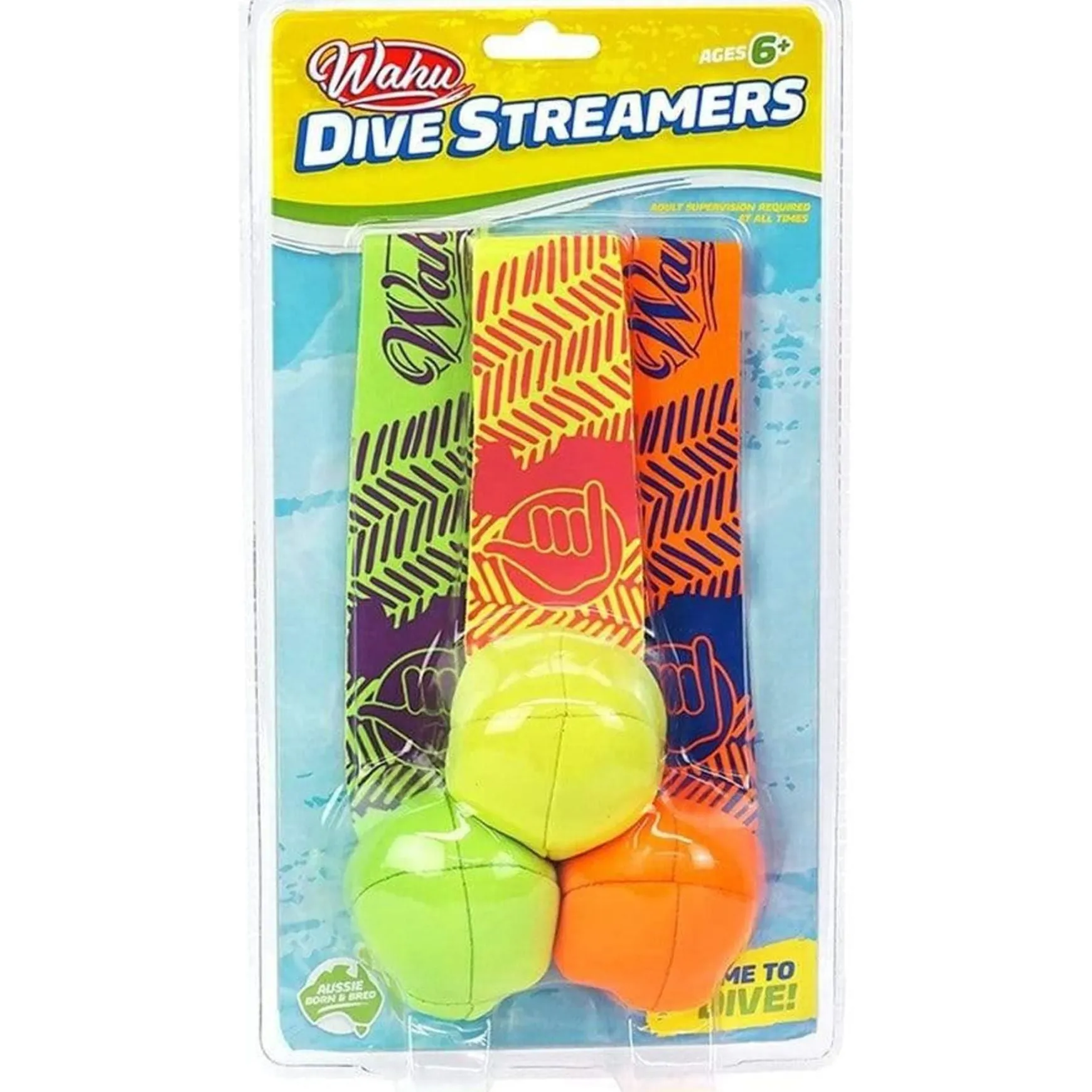 Made from safe and soft neoprene the Wahu Dive Streamers are ideal for developing children’s dive and retrieve skills. They are also excellent for building underwater swimming confidence in young swimmers. Includes 3 colourful dive streamers.