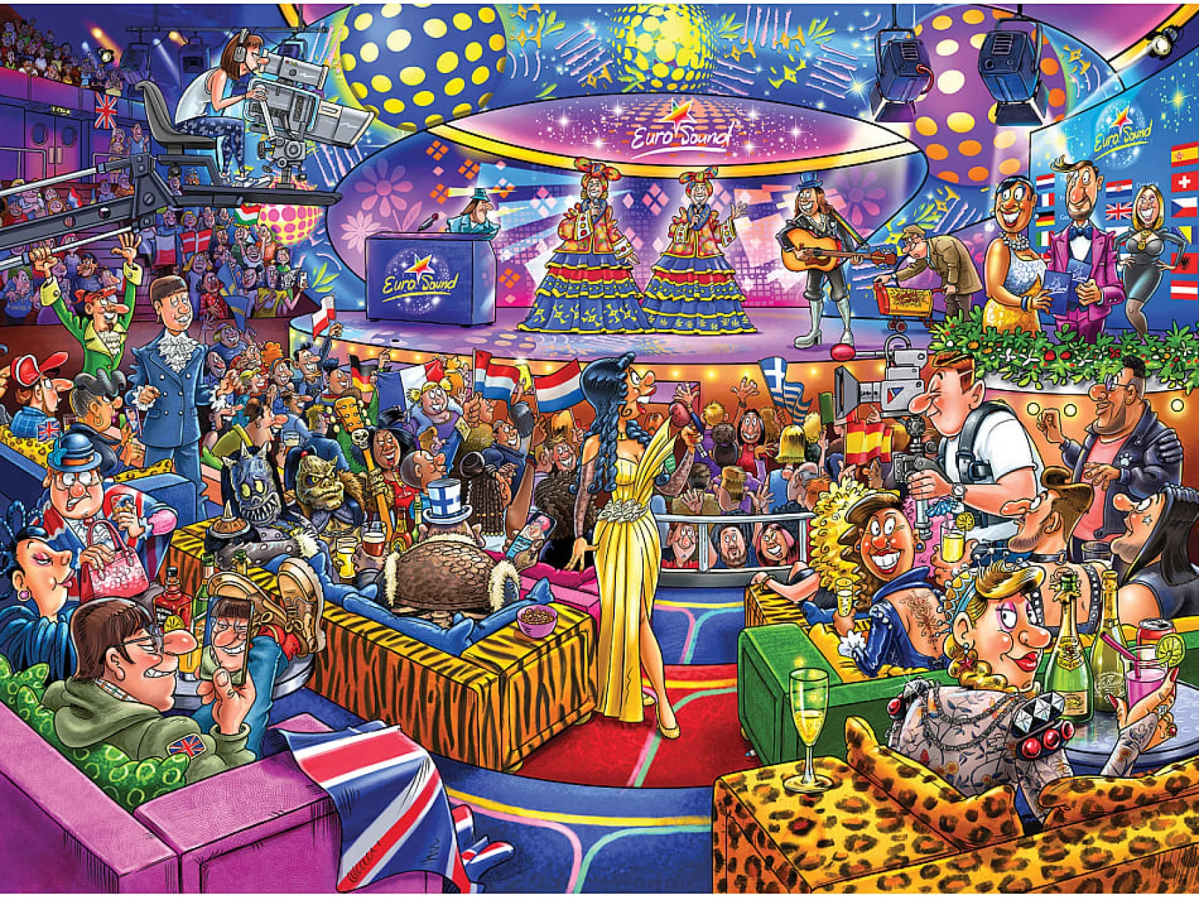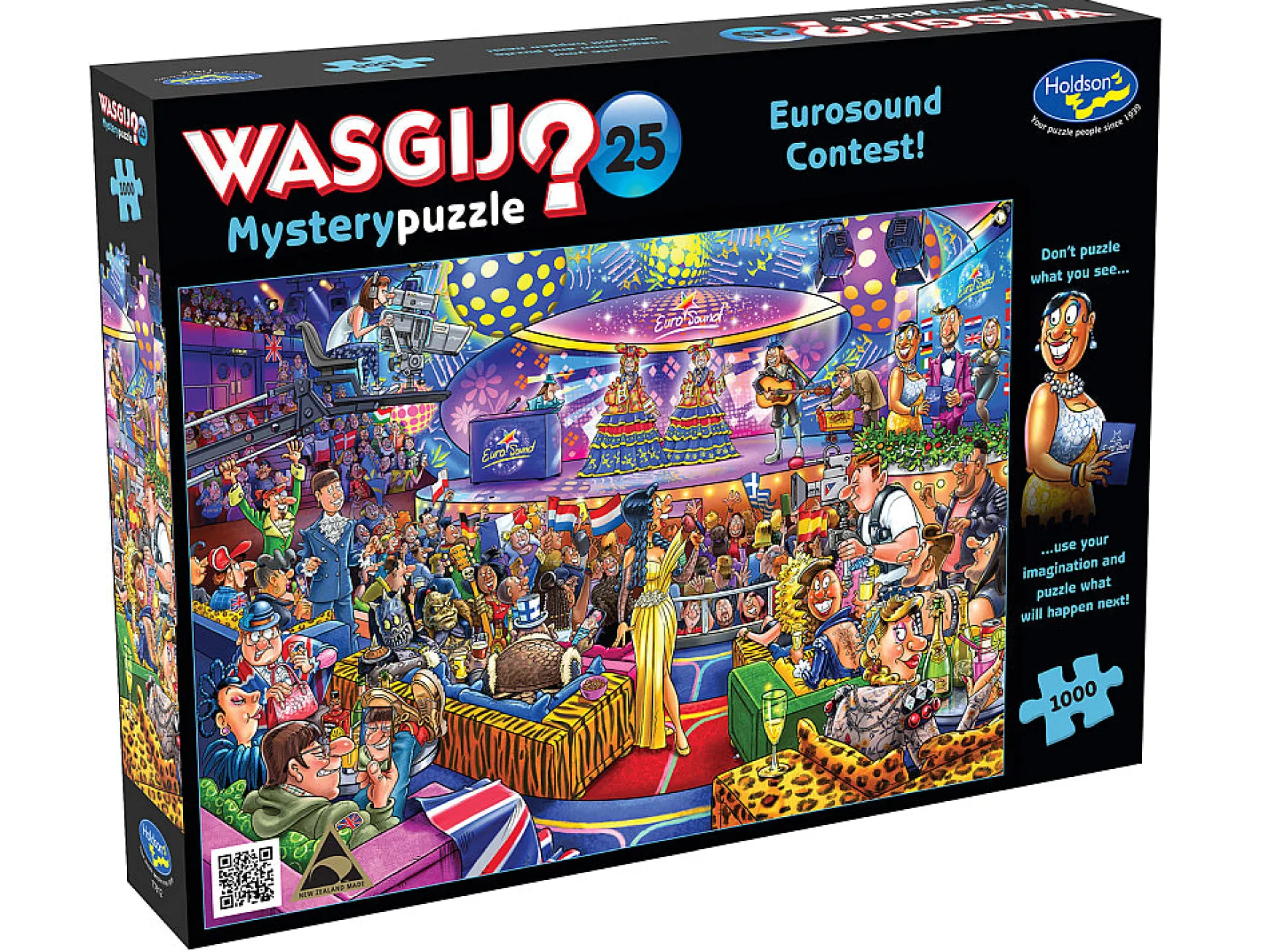 Get ready for a dazzling spectacle with “Eurosound Contest!” – a 1000-piece Wasgij Original puzzle that lets you puzzle out the unexpected events unfolding on stage. The scene is set for an electrifying evening, with musicians from around the world competing for the crowd’s cheers and the judges’ top scores. But as the current act takes the stage, will they captivate the audience or have a surprise up their sleeves to win those final, crucial points? Unlike traditional puzzles, Wasgij challenges you to piece together what happens next using only the clues on the box, making every puzzling session an exciting mystery to solve.