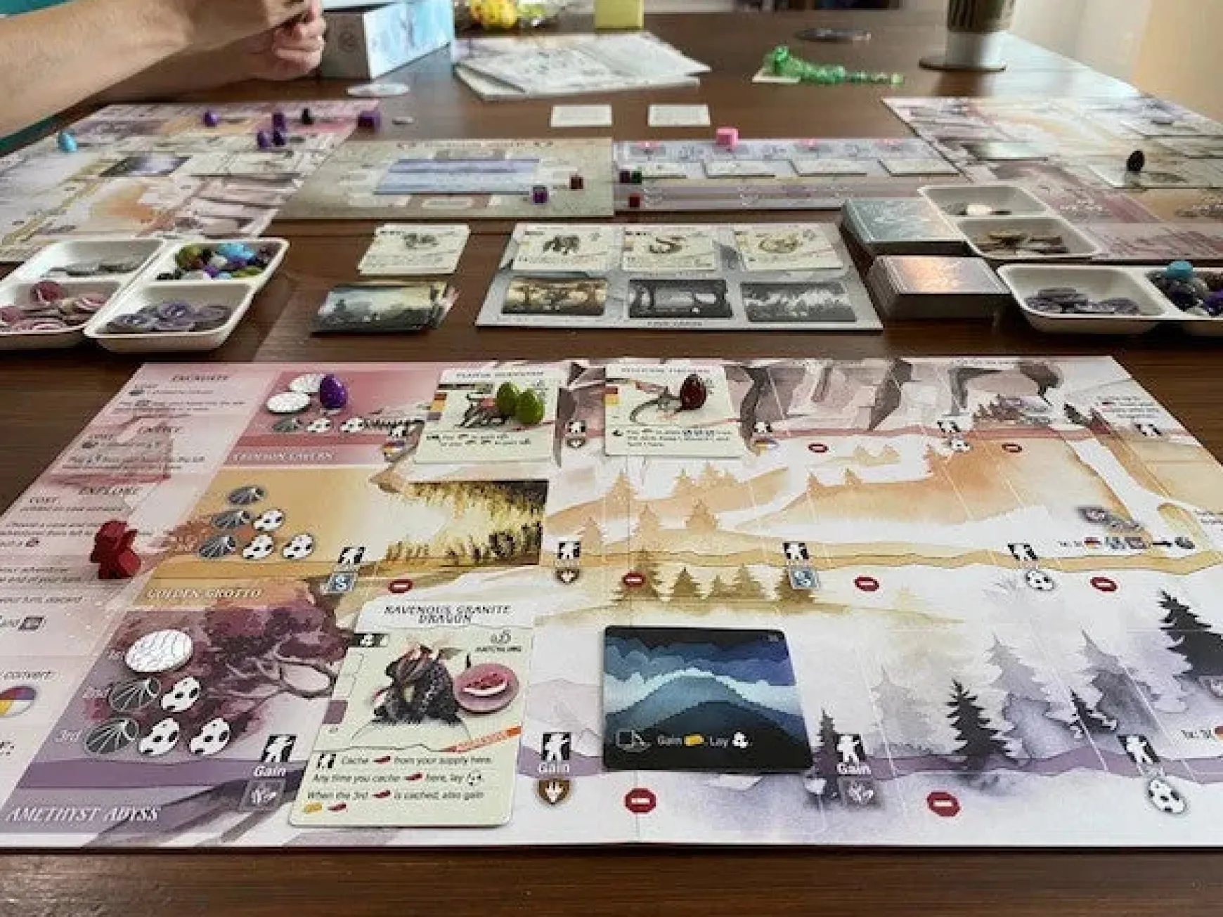 - Explore your caves from left to right to activate abilities (not right to left); reaching the end of a cave–when fully excavated and occupied–offers scoring benefits