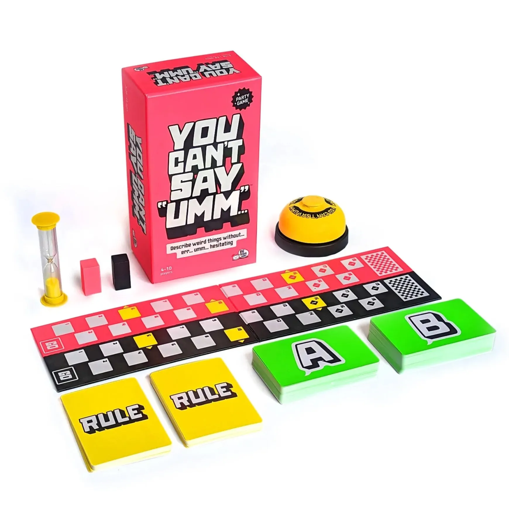 This is a noisy party game with one super, simple mission – you can’t say “umm”. Two teams race to get their pieces to the end of the